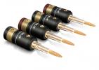 Вот у меня на усилителе такие клеммы. Для банана дырки нет, лопатки тоже не пойдут по размеру. Что в него кроме провода тыкать посоветуете? У меня фантазии только на зажимные электроклеммы хватило - луженая медь.